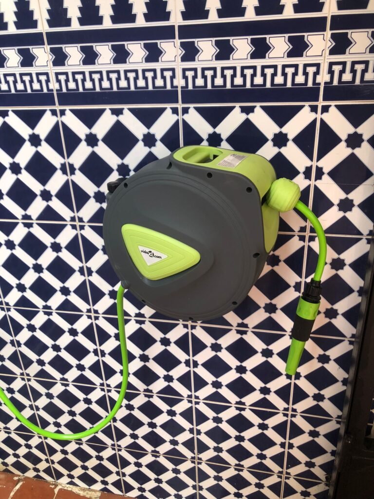 Recientemente, en un piso vendido, la compradora quedó maravillada con la terraza. Ésta tenía una manguera muy larga, pero «afeaba» el patio. Decidimos tener un detalle con ella, y busqué la manguera perfecta para ese sitio . A menudo, uno se enfrenta al dilema de encontrar accesorios que sean funcionales, sin que ocupen mucho espacio. Así que, cuando me topé con esta manguera, supe que debía compartir mi experiencia por aquí.